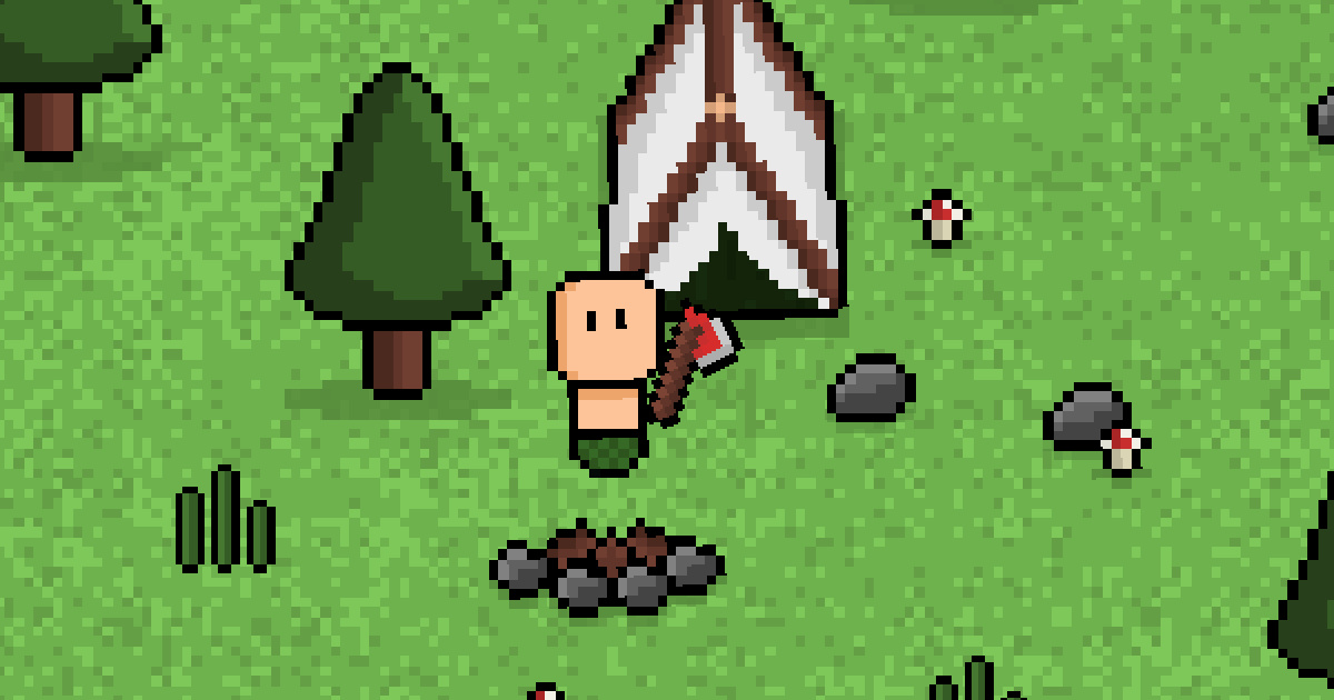 Are you ready to survive? You have an axe in your hand, start cutting down all the trees. First, cut down the trees and build a tent. After the tent, you should build walls around it so that cannibals dont attack and eat you. Either run away from the cannibals or fight them to make them flee. Collect rocks, bushes, and wood. You need to make a fire. If your health is low, eat mushrooms, or you might die. Finally, as the last task, build a raft and complete the game.